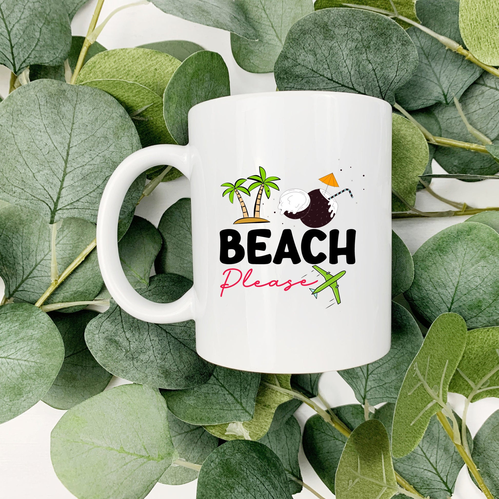 Beach Please Coffee Cup sublimation- 15oz Cup - Two Sided Image