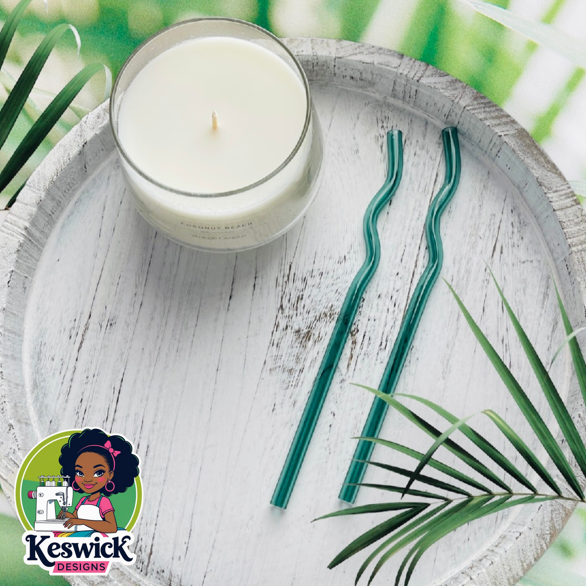 Reusable Glass Green Wavy Straws | Eco Friendly Drinking Straw | Colorful Bent Glass Straw for Smoothies, Iced Coffee, & Juices | Fun Gift Idea | Set of 2