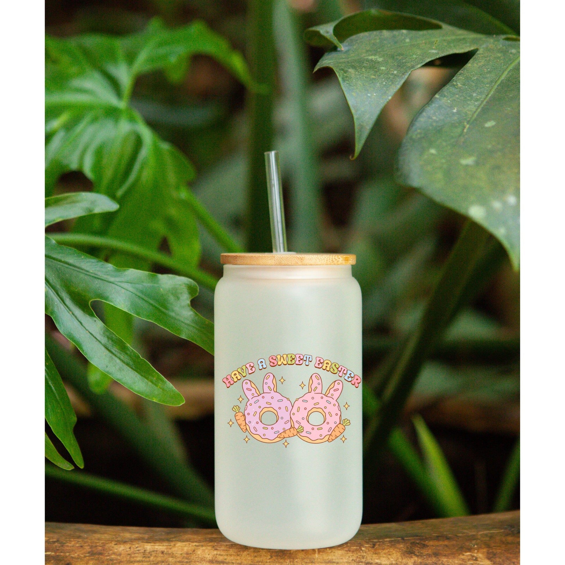 Happy Easter | Have A Sweet Easter | 16oz Libby frosted Glass with bamboo Lid and Straw
