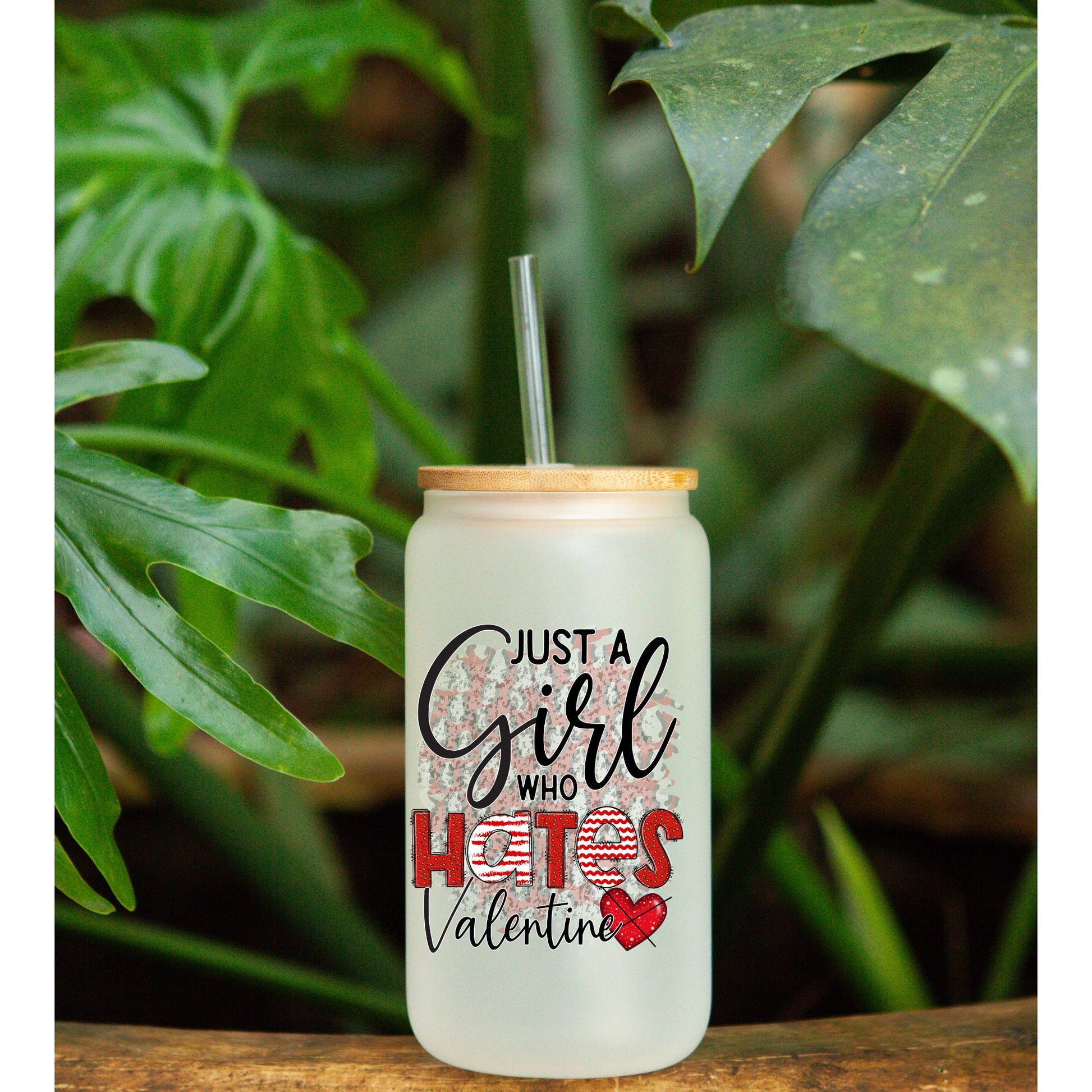 Just A Girl Who Hates Valentine | 16oz Libby frosted Glass with bamboo Lid and Straw