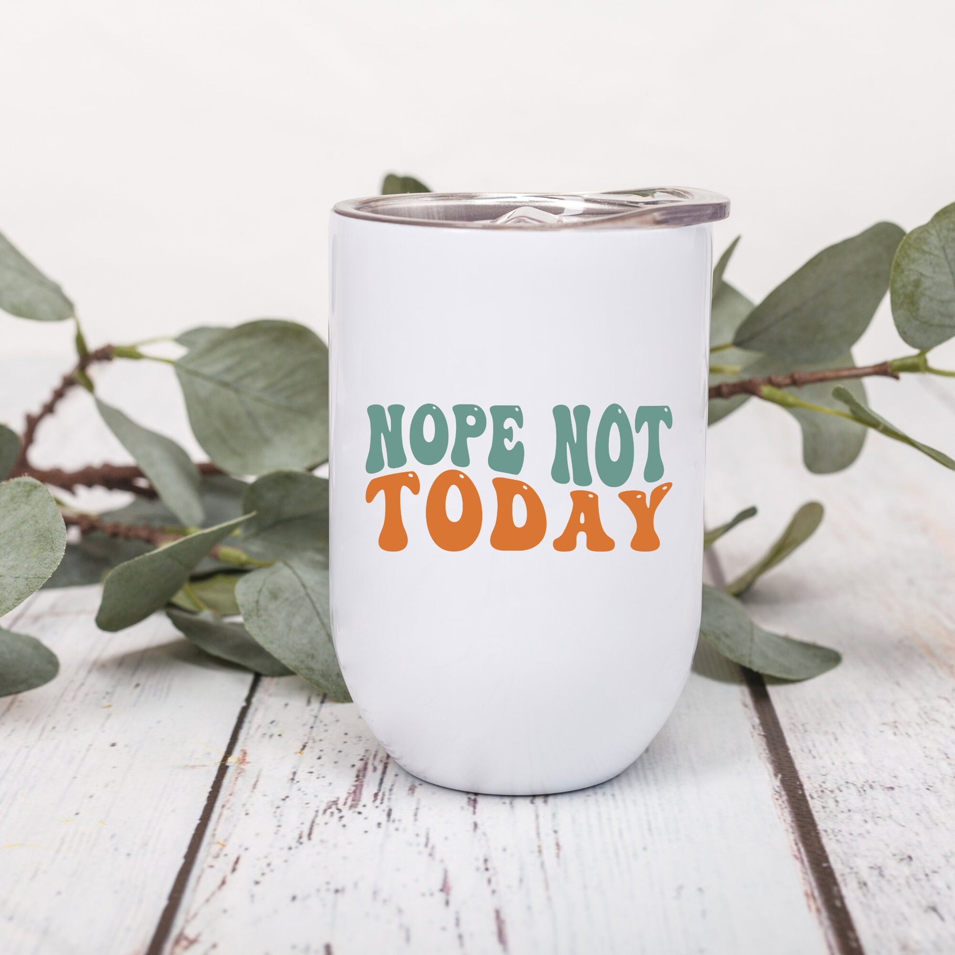 Nope Not Today - Wine Tumbler - White - Tumblers Straight, Double Wall Insulated Stainless Steel Tumblers Bulk Stemless Wine Tumbler Cup with Lid, Metal Straw, Brush, Display Box, White