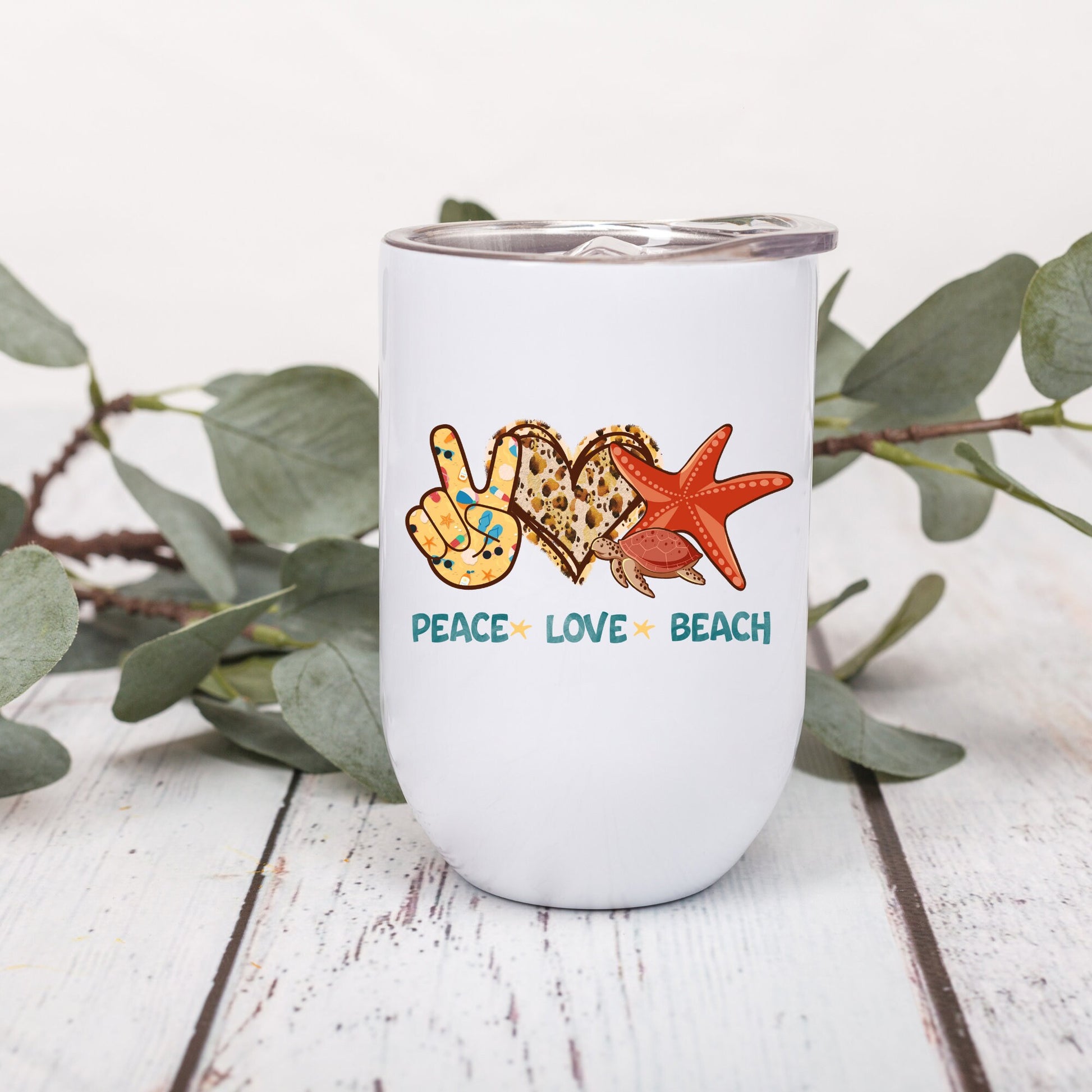 PEACE LOVE BEACH - Wine Tumbler - White