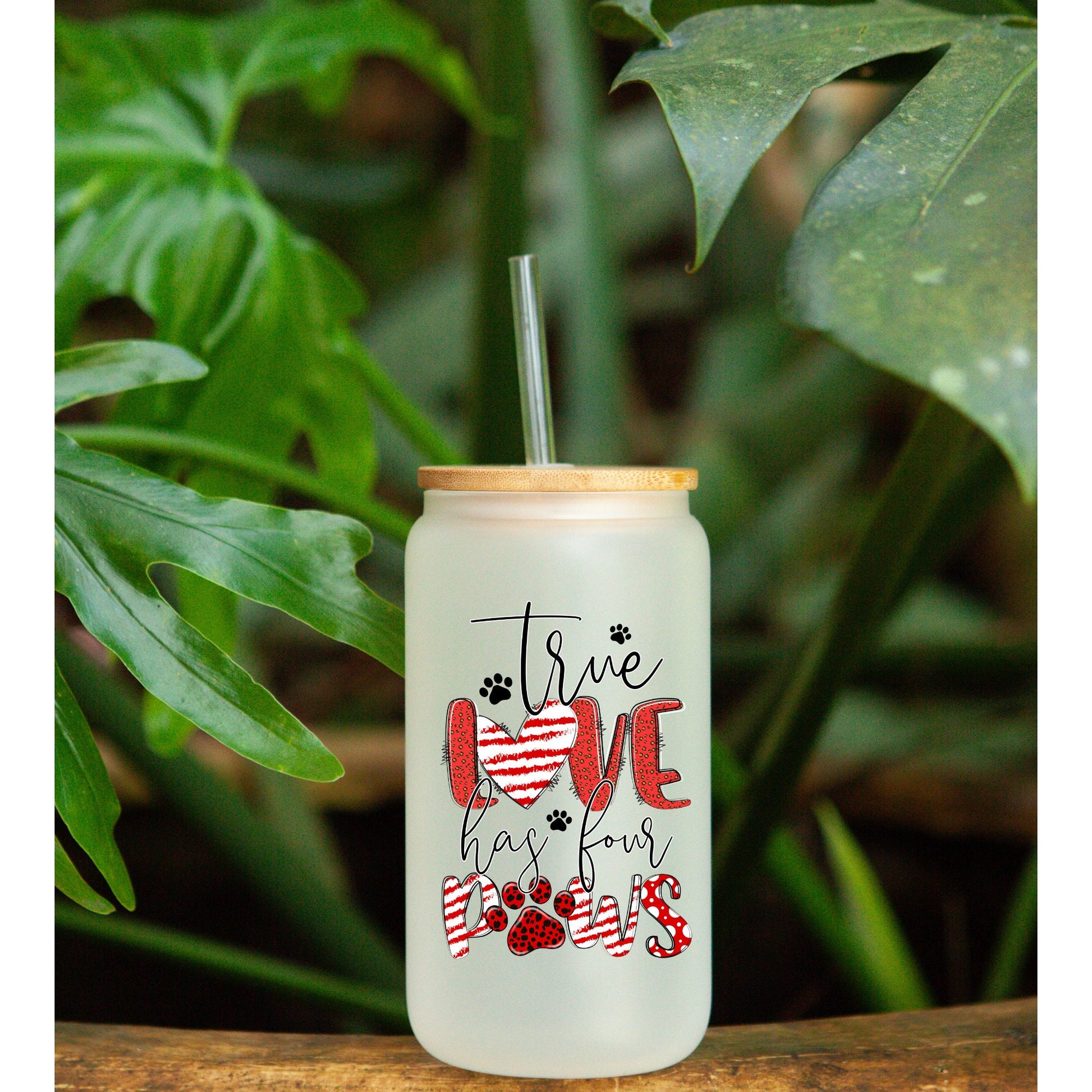 True Love Has Four Paws| Valentine Day | 16oz Libby frosted Glass with bamboo Lid and Straw